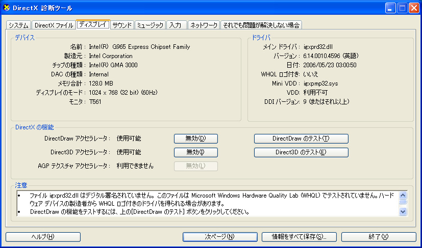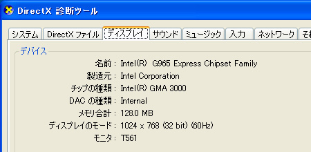 上に示したのは,第2回でも紹介したDxDiagの「ディスプレイ」タブだが,今回は「製造元」の欄が最も重要である。