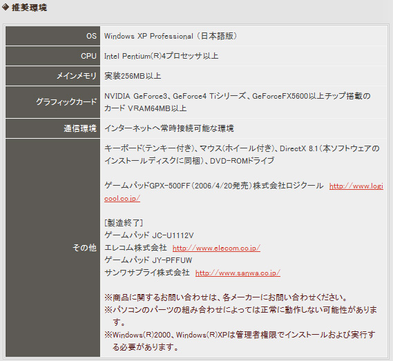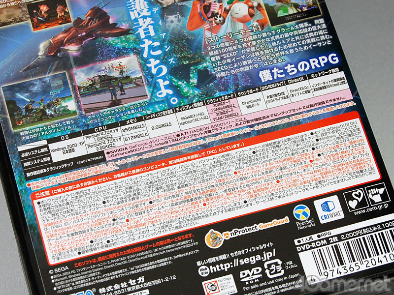 | こちらは「ファンタシースターユニバース」の製品ボックスから。動作環境一覧の表記方法はメーカーによって異なる |