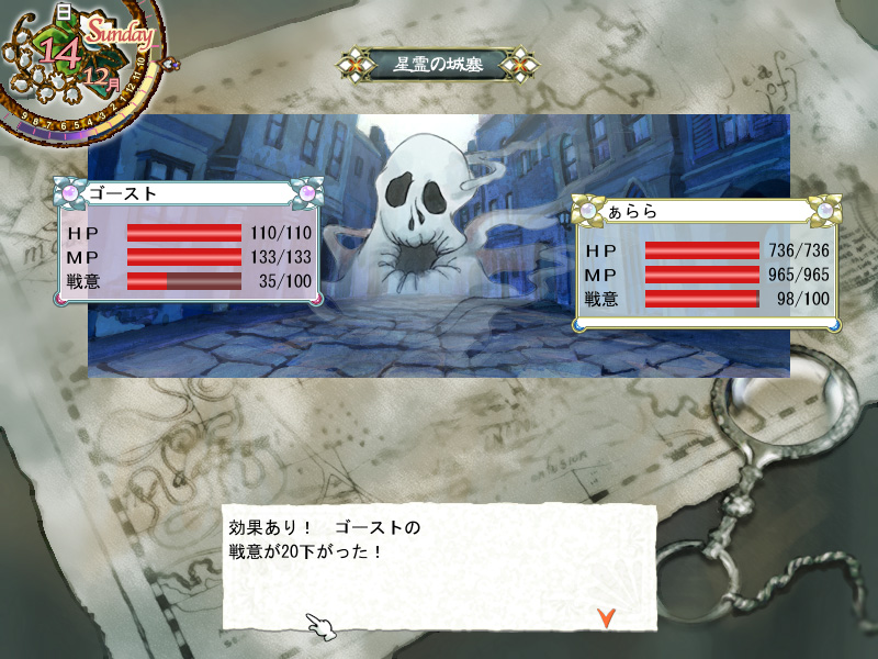 しかし,意外なところで役に立つ技能があった。小学生のうちから,コミュニケーションに貢献するだろうと考えて学ばせていた「音楽」スキルだ。音楽スキルには,戦闘で使うと相手の戦意を低下させる効果がある。これを利用すれば,魔法や武器で効果的なダメージを与えられない相手にも,比較的簡単に勝てる。よく分からないが,ぁららとその敵は「戦いの道具じゃない」のである。「人の革新」も後の世代に入ると,エンジェルなんちゃらとか言って人の戦意を失わせるタイプがあった気がするので,よしとしよう。