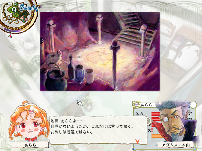 マスクかぶりっぱなしのエースパイロット池田アルマジロ三佐に,ニュータ……いや,魔法使いとして育てられる,ぁららちゃん。中学に進んでいよいよ魔法使い修行の第一歩を踏み出したわけであるが,初期における魔法スキル向上手段「オカルト研究会」は占有時間も長く,週間スケジュールを組む際には,ほかのカリキュラムとの組み合わせに悩む。とくに,あまり門限を遅くしたくない中学初期は,いかんせん空き時間のほとんどないスケジュールになってしまう。あまりにも効率的な兵士育成カリキュラムである。