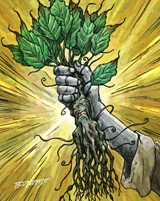 マンドレイクは人のような形をしている植物で,顔のような頭部を持ち,葉や根などは四肢のようにも見える。植物型のモンスターというと,近くを通りかかった人や動物を襲う,というイメージがあるかもしれないが,マンドレイクは比較的温厚(?)で,危害を加えなければ無害な存在である。