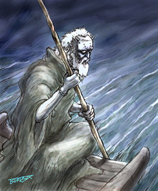 カロンはギリシャ神話に登場する神の眷属で,暗黒の神エレボス(Erebos)と闇の女神ニュクス(Nyx)との間に生まれたとされている。その姿は無愛想な老人であり,主な仕事は冥界に流れる川,ステュクス(Styx)の渡し守である。ギリシャ神話の世界観では,死者はカロンに導かれて川を渡り,冥界へと行くことになるのだ。