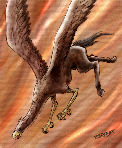 ヒポグリフは,上半身は猛禽類,下半身は馬という姿のモンスターである。要は,グリフォンの下半身が馬になったものだ。そのため,攻撃手段もグリフォンと似ており,かぎ爪やクチバシなどが武器となる。