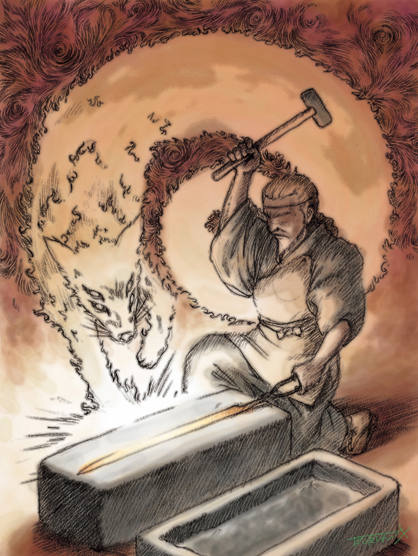 前回,武蔵坊弁慶の岩融(いわとおし,「こちら」)を紹介したときに,その作者は三条宗近(さんじょうむねちか)とする説があると紹介した。三条宗近は平安初期に実在した鍛冶で,能のテーマにもなるほどの有名な人物。今回は三条宗近と"小狐丸"に触れてみよう。