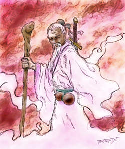 太上老君は紫金紅葫蘆を武器として使っていたわけではないようで,仙丹入れとして使っていたらしい。盗まれたほかの道具については,七星剣は妖魔を従え,羊脂玉浄瓶は水入れ,芭蕉扇は八卦炉の火を扇ぐもの,幌金縄は太上老君の帯であるという。今回は紫金紅葫蘆の説明だけだが,ほかの武器/道具については,機会があれば紹介するとしよう。