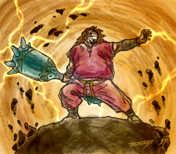 ケルトの神々といえば優美な印象があるが,ダーザはそうではなかった。よく言えば巨漢の神なのだが,数々の書物で,ボサボサの髪の毛に,赤ら顔,突き出た腹……などと表現されている。着ている服も丈が足りないなど,お世辞にも美しいとはいえない神なのだ。
