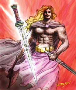 万能を絵に描いたような存在で,北欧神話では主神オーディン,雷神トールに次ぐ存在としている資料もあることから,本来はなんらかの主神の一人であったのではないかともいわれているほど。そうしたこともあってフレイの人気は高く,絵画なども多く残されている。今回は,そんなフレイと,その腰に吊されていた剣(名称不明)について紹介してみよう。
