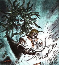 ギリシャ神話には有名なエピソードが多数あるが,ペルセウス(Perseus)のメデューサ(Medusa)退治は,その中でもとくに知名度の高いものだろう。神々の加護を受けたペルセウスが,さまざまな神器を駆使しつつ,凶悪なメデューサを倒すというストーリーには,多くのファンタジーファンが心をときめかせたに違いない。今回は,このメデューサ退治にスポットを当てつつ,ペルセウスの振るったハルパーを紹介してみたいと思う。