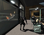 アクションに関して,前作からの細かい変更はいろいろあるが,目立つものとして「逆さにぶら下がった状態で銃を撃つ」と「ハーフスプリットジャンプからジャンプ」,そして私の大好きな「SWATターン」がある。チュートリアルを兼ねた最初のマップをプレイしてみれば,逆さ発砲以外,一通り体験できる。先へ進むに連れ,この新しい動きを使って局面を打開するシーンが増えてくるが,やはり使用頻度が高いのがSWATターンだろう。これを使って,向こうに人がいる開いたドアの前をすっと通り過ぎるのは,なんでか知らないけど,たまらなく楽しい。10回ぐらい行ったり来たりしても,敵はてんで気がつかないのだ。ざまあみろ。