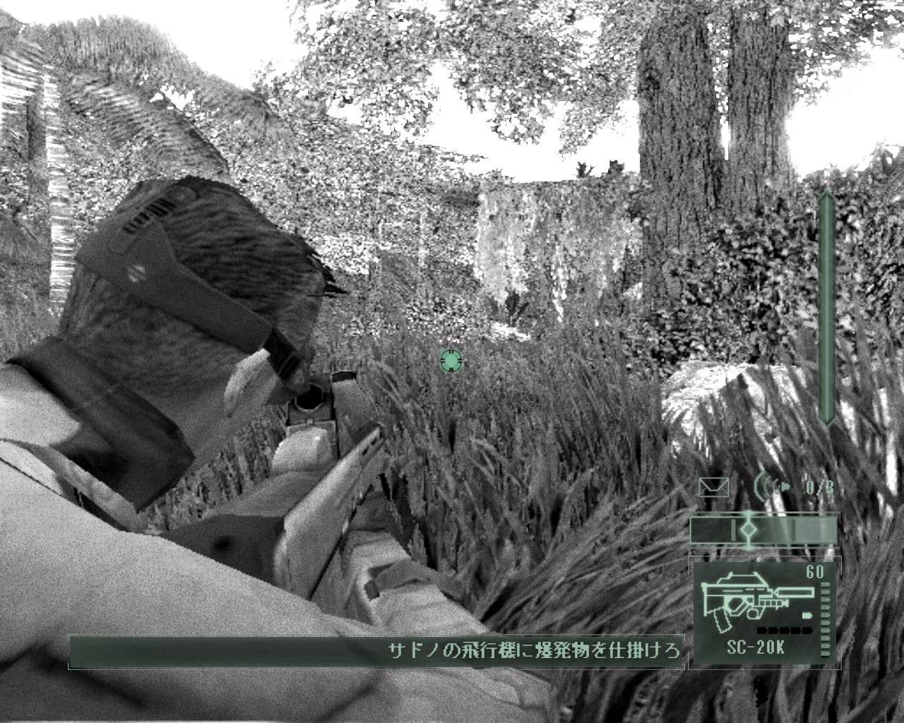 暗闇から,多目的アサルトライフルSC-20Kの望遠照準で眉間に一発。ボロ雑巾のように崩れ落ちる敵。無表情に通り過ぎるサム……というのもカッコいいのだが,やはりゲームに慣れてくると,それでは満足できなくなるはずだ。敵を殺してはいけないマップもあるし,二人以上の敵がいる場合は一人を倒した時点で警報を鳴らされてしまう恐れもある。