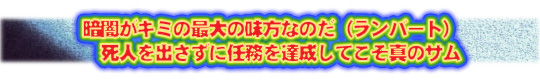| やあ,僕だよ。サムおじさんだよ。どこに隠れているか分かるかなー? プレイヤーもうっかり見失ってしまいそうなほど,闇に溶け込むのが上手なサム。誰にも見つからなければ,無駄に殺す必要もないのである |