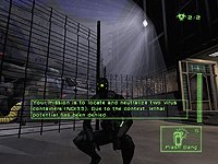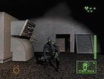 | 今週はマルチプレイについて少々。一度プレイしてみればすぐに分かるが,マルチプレイは,グラフィックスも操作性も異なる,まさにもう一つのスプリンターセルといっていいほどだ。しかもスパイを選ぶか傭兵を選ぶかでゲーム性は大きく異なり,一粒で三度おいしいとはこのこと |