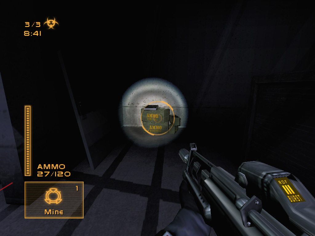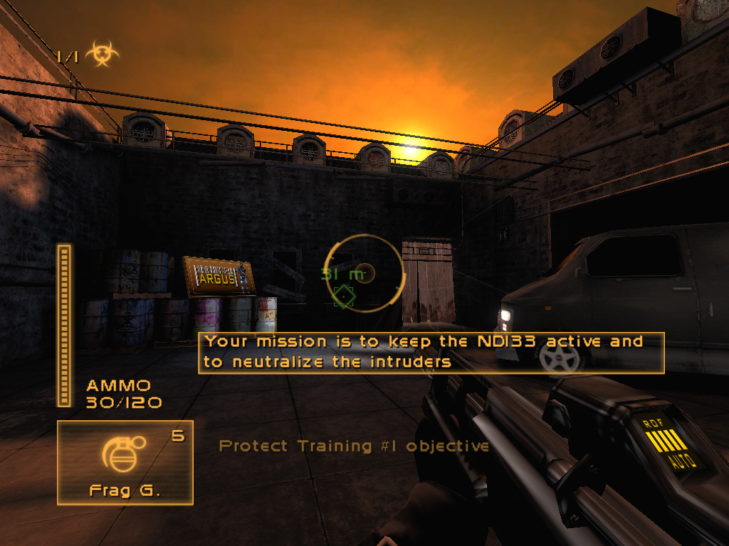 | マルチプレイはCo-opのみだが,モードは3種類。時間内にND133Kをその場で中和するか,引っこ抜いてドロップポイントまで持っていくか,モデムを仕掛けて中和させるか,である。ND133Kを置いてあるステーションの数はそれほど多くはないが,マップは非常に広く,また入り組んでいる |