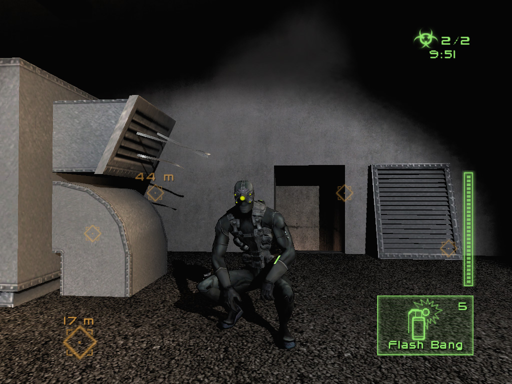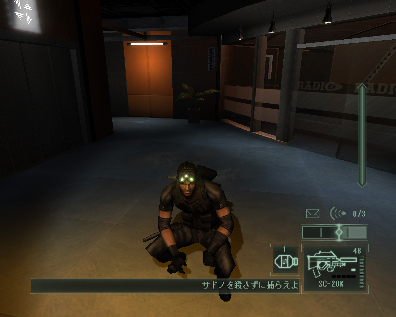 暗闇に生きるスーパースパイ,サム・フィッシャーたらんと日夜猛訓練に励む諸君,お世話になってます,おなじみのサムおじさんのスパイ教室です。たまには日光に当たらないと,ビタミンDが不足するので気をつけてくださいね。