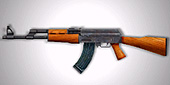 AK-47 マシンガン 旧ソ連製,1947年生まれのアサルトライフル。ベトナム戦争まで主流だった7.62mmライフル弾を30発装填,セミ/フルの切り替えが可能だ。とにかく安価,砂漠や湿地でも動作する信頼性,武器商人も途方に暮れるほどの在庫数。もちろんテロリスト御用達だ。 |