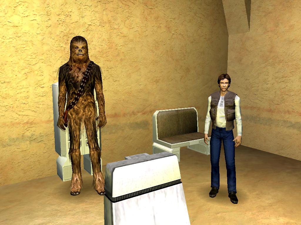 スター・ウォーズ・サーガに登場する有名人物は,SWGの中にもNPCとして存在する。この世界のどこかでルークにレイア,ハン・ソロといった旧三部作の主要人物達が生きており,彼らには実際に会いに行ける。ほかには旧三部作すべてに登場したX-Wingパイロットのウェッジ,エピソードVIで第2デススターの破壊作戦に関わった反乱同盟軍の指導者モン・モスマなども用意されている。