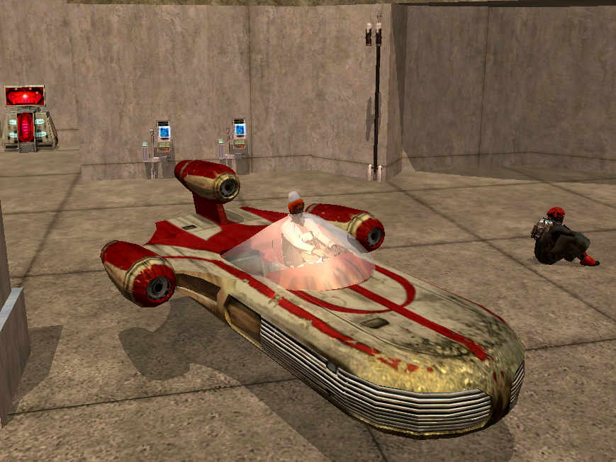 | タトゥイーンでアナキンが乗っていたものと,同型のランドスピーダー。最高速度は低いが悪路走破性は高い。修理コストが低いので,所持金に余裕のない序盤にはいいかもしれない。 |