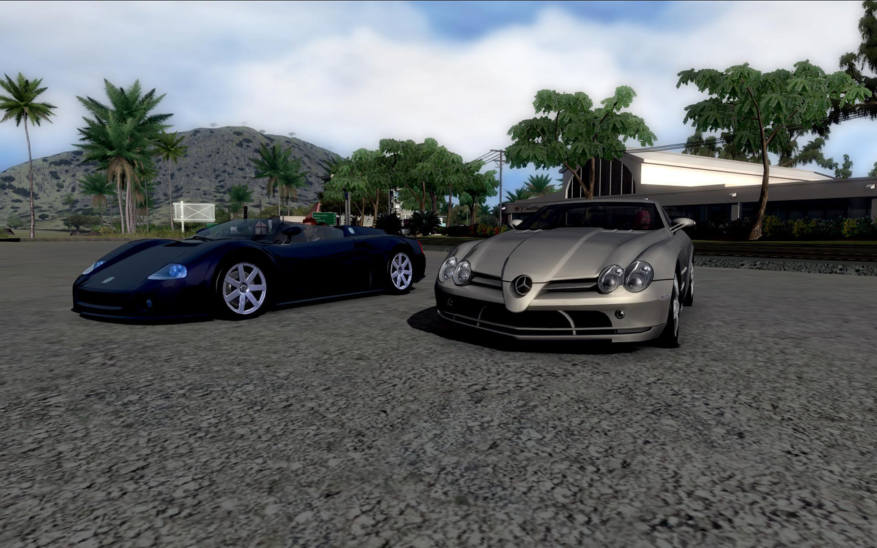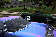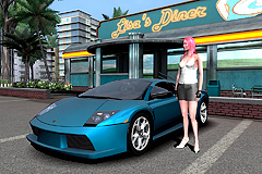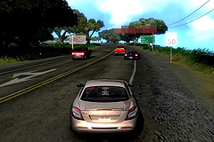 と,このように,島には自分以外の多くのプレイヤーが走り回り,ゲームの現実感をいやが上にも高めているのである。もちろん,路上で遭遇するプレイヤーとチャットを使ったコミュニケーションなどもとれるわけだが,ただ近づいてクラクションを鳴らし,鳴らし返されたりするだけでも,まるで本当にその場にいるような,なんとも言えない嬉しい気持ちになれる。したがって筆者はクラクション鳴らしまくりである。鳴らして鳴らして鳴らしまくっている。クラクション万歳! 迷惑ですか? 迷惑ですね。