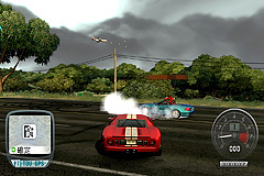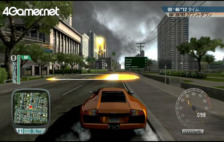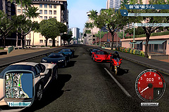 インスタントレースではパッシングを受けた場所がスタート地点となる。挑戦を受ける側がマップ画面上でゴール地点を設定すればスタートになり,あとは相手に負けないように華麗なドライビングテクニックでゴールまで突っ走るだけだ。賭け金を設定しておけば,レースに勝って天狗になって賭け金までふんだくれるわけだ(負ければ当然,相手に支払う)。この賭け金設定はインスタントレース画面ではなく,ゲームオプションで設定するので,うっかり見逃していて実はものすごい賭け金になっていた,なんてことがないように気をつけよう。