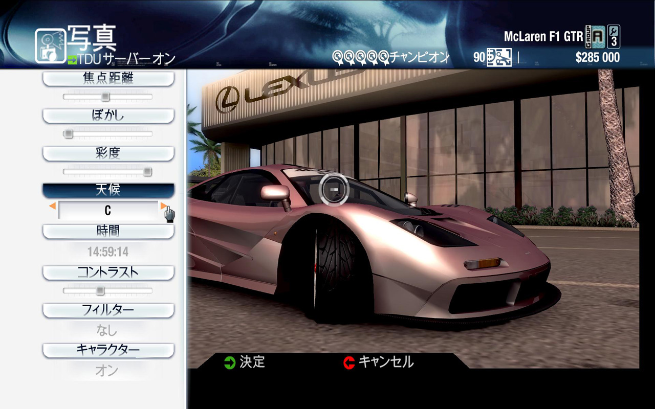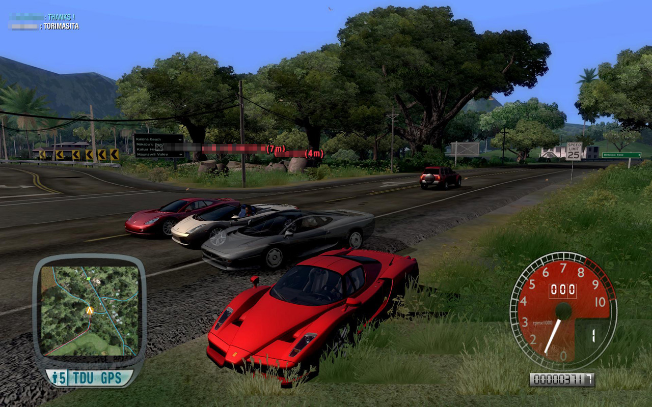 あれは一体なんだったんだろう? 車から飛び降りて機関銃でもぶっ放せるゲームだったら蜂の巣にしてやったのになぁ,と強気のコメントを書いておくが,ゲームとはいえ少々ビビっていたのは内緒。もちろん,これはこれで楽しいし(編集部注:強がり),そういう人達ばかりじゃないので「うわ,ハワイこえ〜」とか思わないように。そう,こんな出会いこそがTDUのオンラインプレイの面白さなのである。