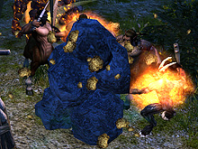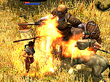 物理エンジンの効果物理によって,ゲーム中のオブジェクトの挙動は格段にリアリティを増している。例えば,キャラクターが移動すればその足元で草木が速度や向きに応じて揺れるし,橋や崖でモンスターを倒せばその死体は眼下へと転落し,それが坂道の場合はゴロゴロと転がっていく。ファイアーボールとなどの魔法を詠唱したときも,敵との間に遮蔽物があると弾かれてしまう。各種オブジェクトが確かな物体として存在するかのようなリアリティを,随所で感じさせられるのだ。