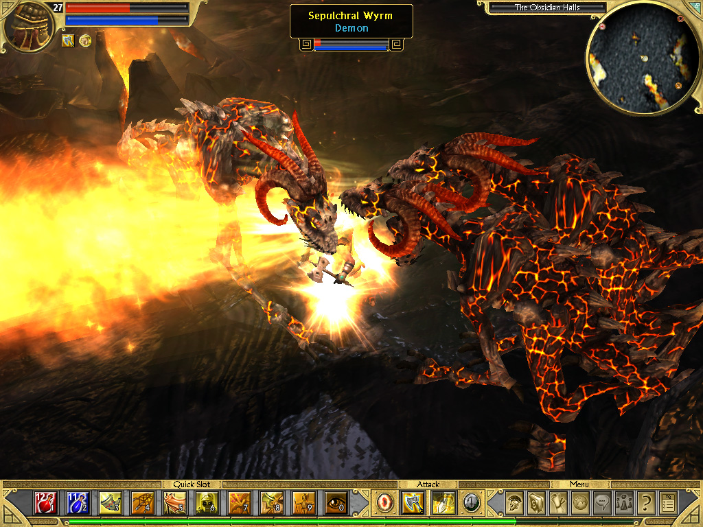 Titan Questでは,スキルを駆使したテクニックが求められる。というのも,体力回復ポーションは遅効性で,効果が出るまで5秒前後を要するからだ。つまり他タイトルでありがちな,大量のポーションをがぶ飲みするようなパワープレイは不可能なのである。したがって他タイトルよりテクニックの比重が増しているうえ,キャラクターの個性が如実に反映されやすい。恐らくコアなRPGファンの中には,この部分だけでもTitan Questに興味を持つ人が,少なからずいるのではないだろうか。