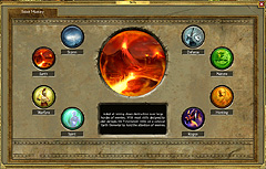 Titan Questのもう一つの特徴は,カスタマイズ性の高い職業システムだ。キャラクターの成長の核となるのは,“Mastery”(マスタリー)と呼ばれる8種類のスキルグループの中から二つを選ぶシステムである。各ジャンルには計20のアクティブ/パッシブスキルが用意されており,レベルアップのたびに得られるポイントをこれらに割り振ることで,キャラクターの個性が形成されるという仕組みだ。マスタリーは以下の8種類になる。