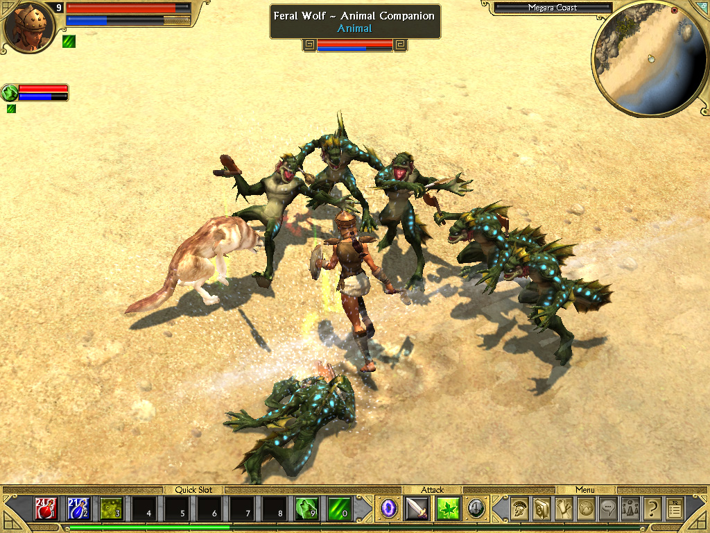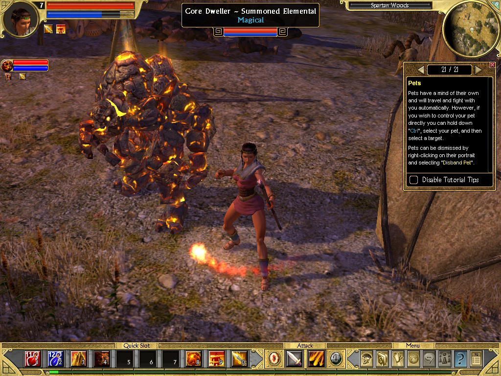 | 敵の集団と戦うときは,逃げながら“Ensnare”を使うことで各個撃破に持ち込める。ちなみに,敵にEnsnareを使われてタコ殴りにされるとかなり悔しい |