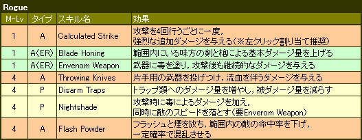 暗殺業に長けたマスタリー。刃物に毒を塗って攻撃することで,一定時間継続的なダメージを与えられる。よって敵と正面切って渡り合うよりは,ヒット&アウェイといった戦術に向いている。ダガーのように攻撃間隔の短い武器を用いれば,生物系の単体モンスター相手にはかなり強力である。