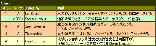Earthとは反対に,四大元素エレメンタルの風属性と水属性に特化したマスタリー。基本的にはEarthと同じキャスタータイプだが,ダメージ面ではEarthに劣るものの,Stormでは敵の鈍化が伴う,と覚えておけばいいだろう。中盤以降では敵を凍らせることもできるので,複数に囲まれるような状況に陥っても対応しやすい。