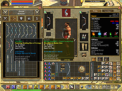 武器や防具など装備アイテムに,攻撃力アップやステータス上昇など,さまざまなタイプの能力ボーナスが付与されたものがマジックアイテムと呼ばれる。これらのボーナスは何十種類もあり,同じタイプの効果でもいくつかのランクに分かれている。付与された能力ボーナスのトータル性能によってランク分けされ,アイテム名の色に反映されるという仕組みだ(なお,Titan Questの装備アイテムに耐久度の概念はないので,アイテムが実際に傷むことはない)。
