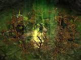 「Briar Ward」は,障害物となる樹木をキャラクターの周りに発生させる。敵にタコ殴りにされることを防ぐので,杖/弓矢を主武器としたときのサポートスキルとして有効だろう |