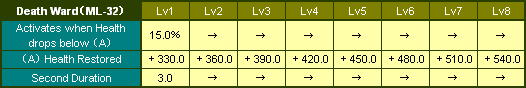 Death Ward:自分の体力が15%未満になると,体力を一定量回復する