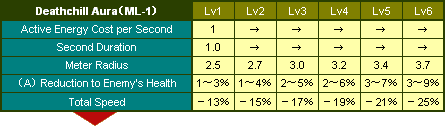 Deathchill Aura:自分の近くにいる敵の体力を減らし,トータルスピードを減少させるオーラをまとう
