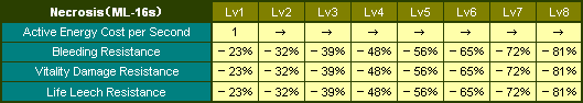 Necrosis:Deathchill Auraの使用中は,範囲内にいる敵の出血/バイタリティダメージ/吸血に対する抵抗力を下げる