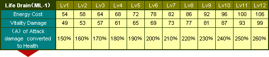 Life Drain:敵単体に与えたダメージを自分の体力として吸収する