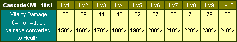 Cascade:Life Drainの効果を強化するほか,ターゲットの周囲にいるモンスターにもLife Drainの効果が発動する