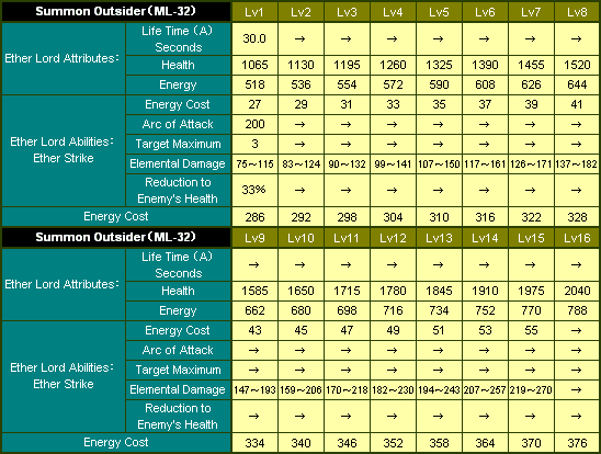 Summon Outsider:巨大なEther Lordを30秒間召喚できる