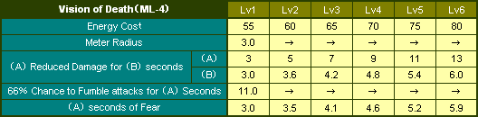 Vision of Death:狙った場所の範囲内にいる敵を錯乱させ,攻撃力を下げたり惑わせたりする