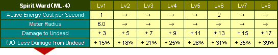 Spirit Ward:範囲内にいるアンデッドモンスターにダメージを与え,アンデッドから受けるダメージを減少させる