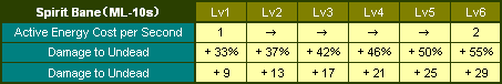 Spirit Bane:Spirit Wardの使用中,アンデッドモンスターに与えるダメージが大幅に上昇する
