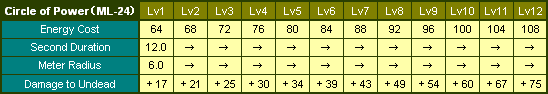 Circle of Power:防御用のサークルを張り,範囲内にいるアンデッドにダメージを与える