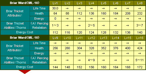 Stinging Nettle:Briar Wardの樹木に近接攻撃した敵に対して,毒属性の継続ダメージを与える