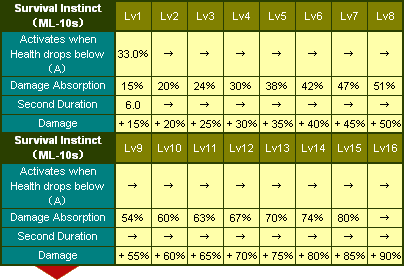 Survival Instinct:ペットモンスターの体力が33%を切ると,一定時間ダメージ量が軽減され,かつ攻撃力が増加する