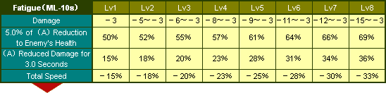 Fatigue:疫病を受けた敵は一定確率で体力が下がり,ダメージ量やトータルスピードが下がる
