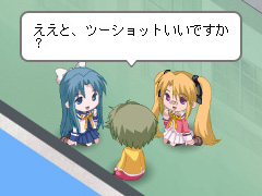 | オ,オッケーですか? ママ,マジで!? 「ツーショット」のコマンドを選択したいのですが,極度の興奮と緊張でマウスを握る手がプルプル震え,うまくいきませんです隊長ッ! |