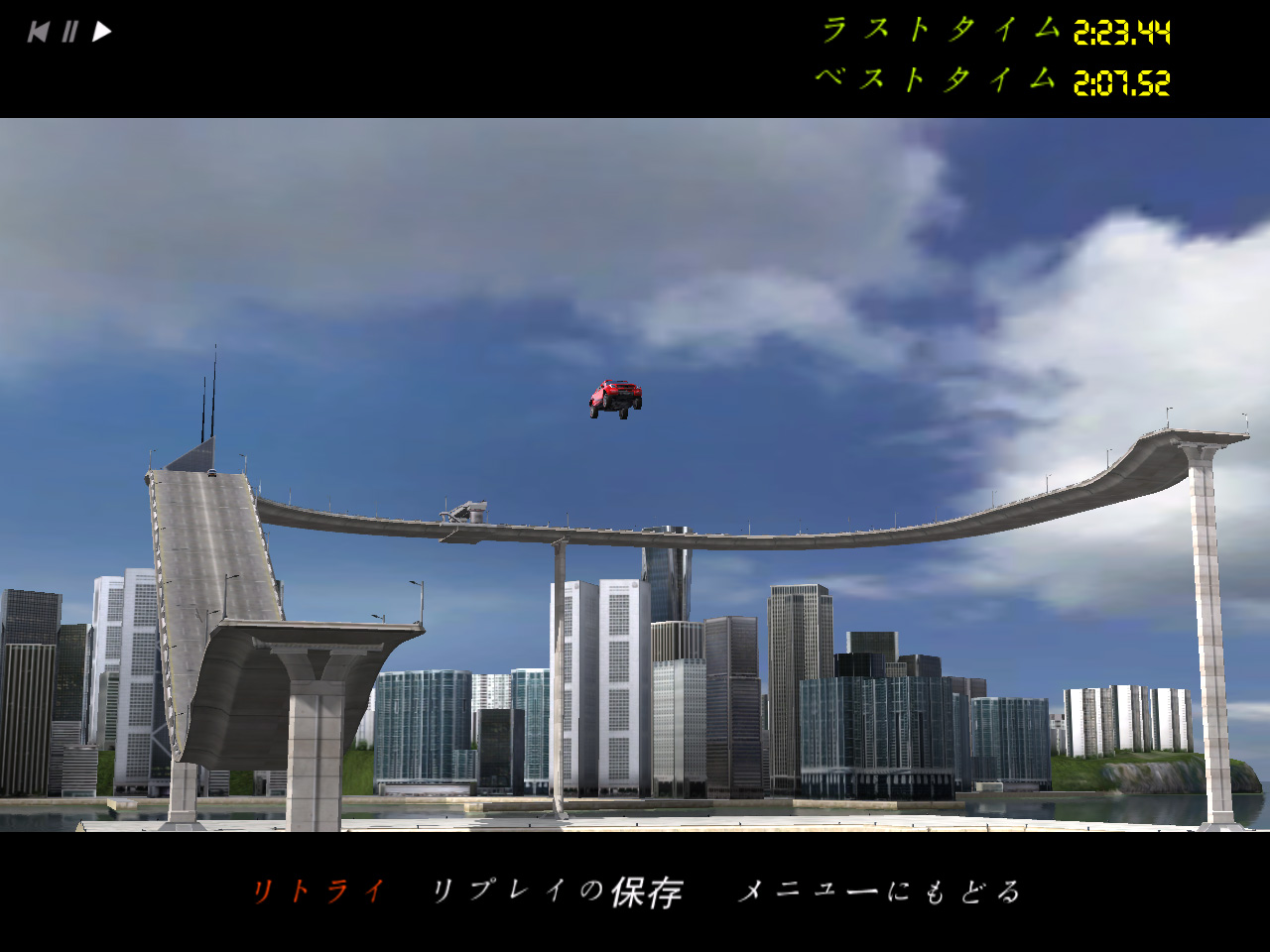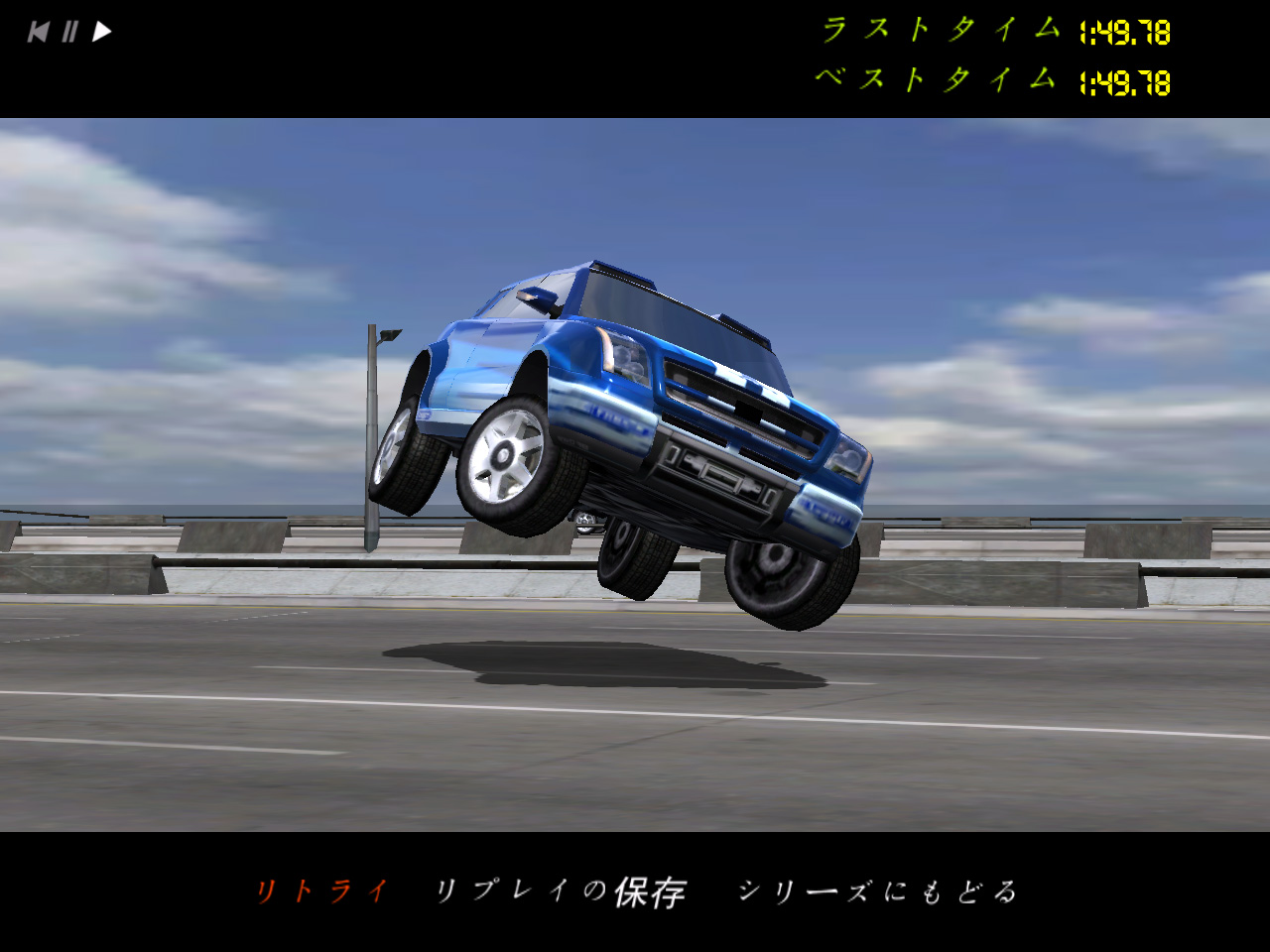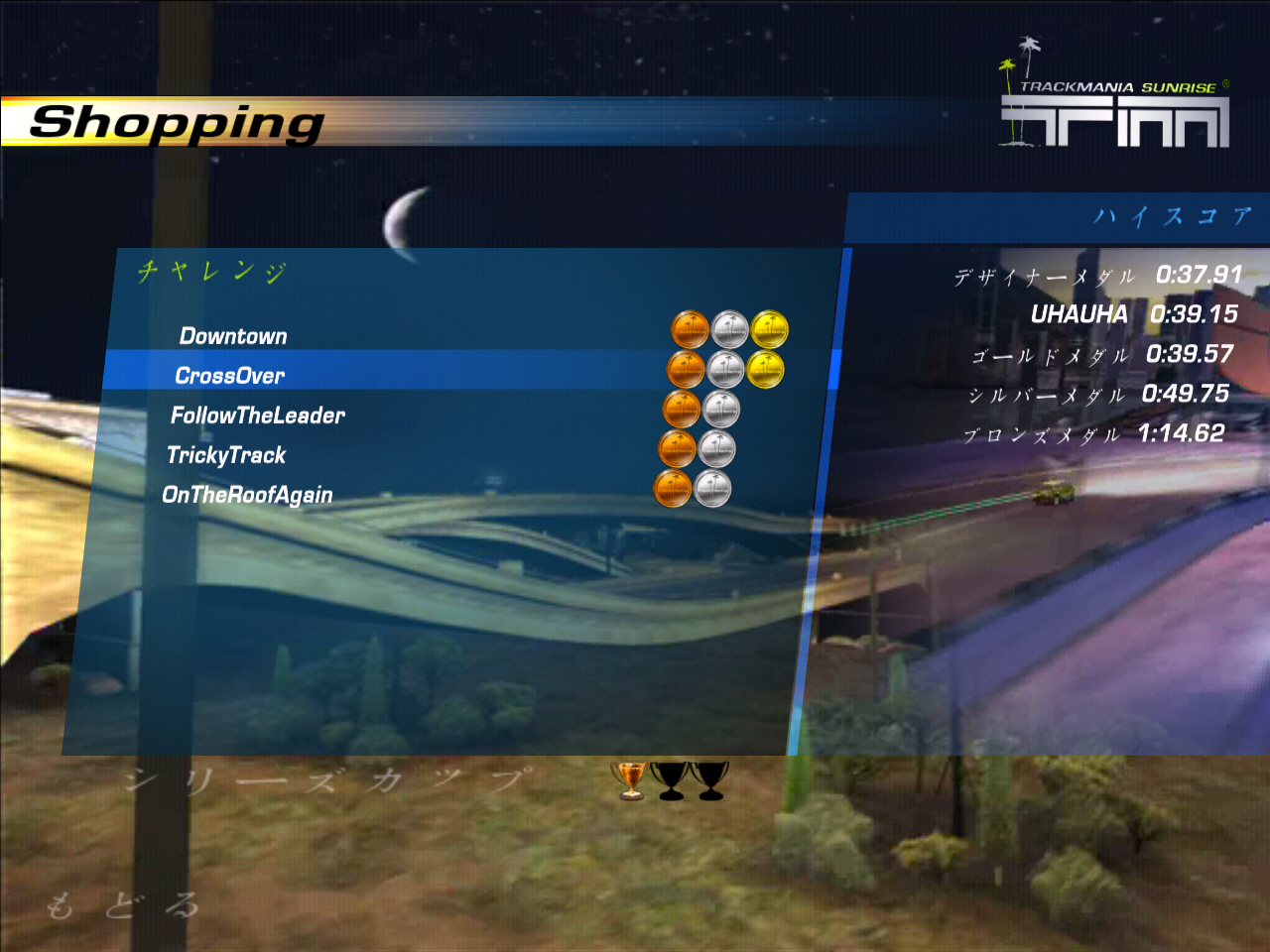 ちなみに「レース」「エクストリームレース」では,ゴールドメダルよりも上のメダルも用意されている。苦労してゴールドメダルをゲットしたら,さらに上のランクの「デザイナーメダル」なるもののターゲットタイムが現れた。このマニュアルにも載っていないデザイナーメダルを獲得すべく,いろいろなコースで挑戦したが,ゴールドメダルよりさらに高難度というわけで残念ながら一つも取れず,このメダルを獲得するとどうなるのか定かではない。とほほである。