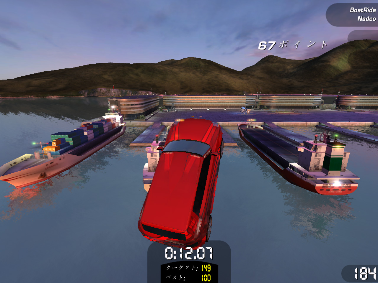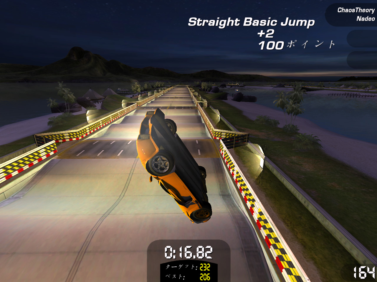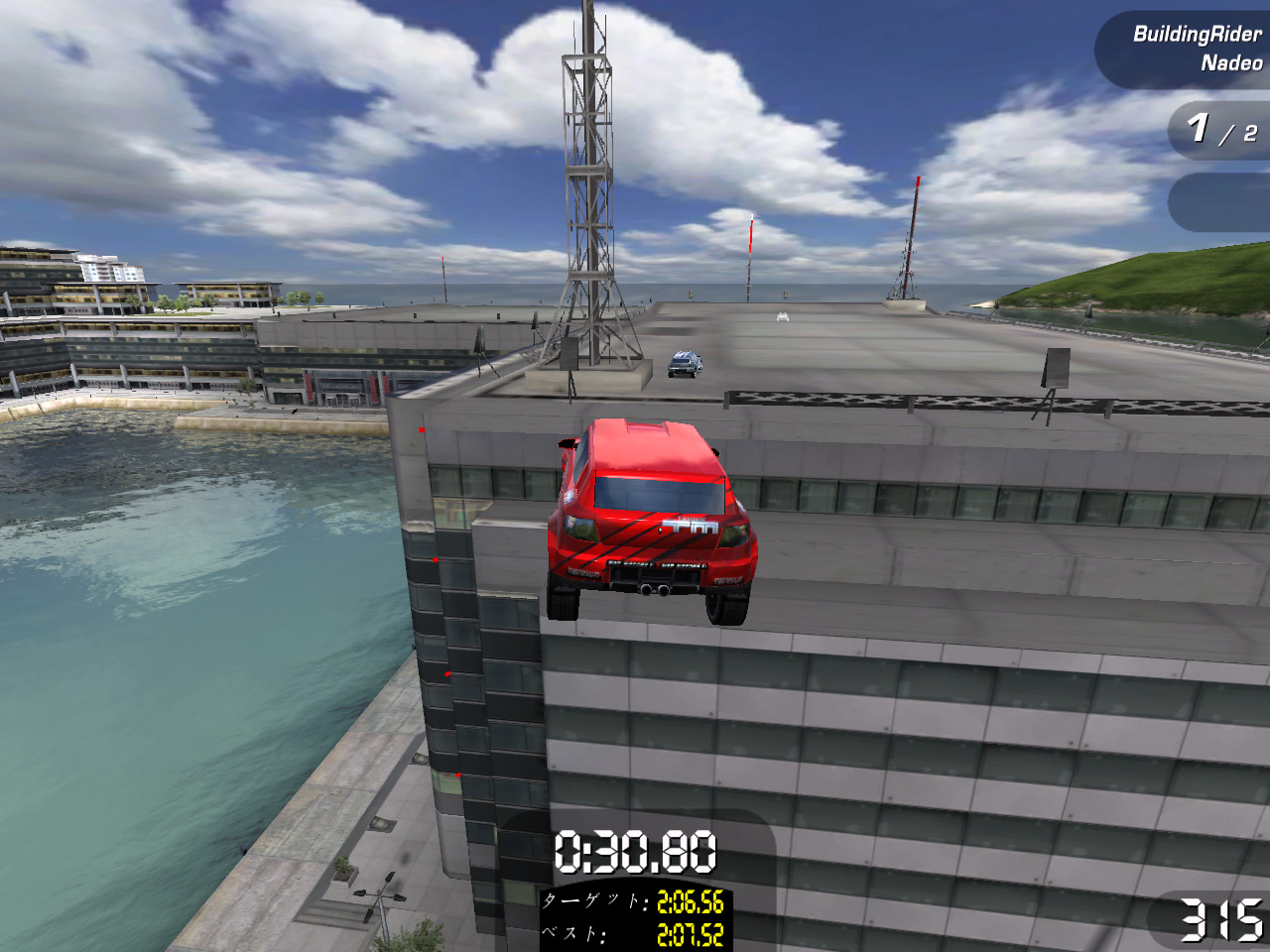 「スタント」チャレンジは,制限時間内にスタントアクション(技)を出しながらコースを走ったり,ジャンプ台を使ってド派手なスタントアクションを決めたりしてポイントを稼ぐ。滞空時間の長いジャンプをしたり,空中で何度も車が回転するようなジャンプを決めたりするとポイントが入る。どんなスタントアクションをするとポイントが入るのかは,マニュアルにも記述がないため種類など正確なところは不明だが,「Spin 180」「Chained Spin 360」「Aerial 360」など,スノーボード競技で見かけるようなアクションがある。同じ技を連続で繰り出したり,キレイな着地を決めるとボーナスポイントが加算されるなど,なかなか奥が深い。制限時間をオーバーするとフィニッシュラインを通過するまで稼いだポイントが減算されていくので,欲を出しすぎると損をする。