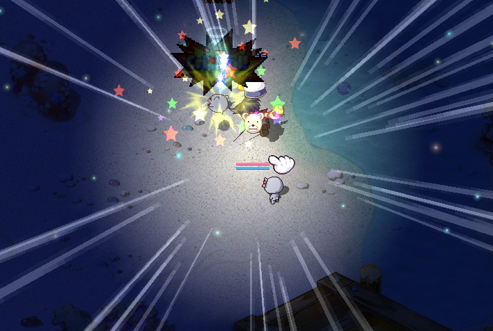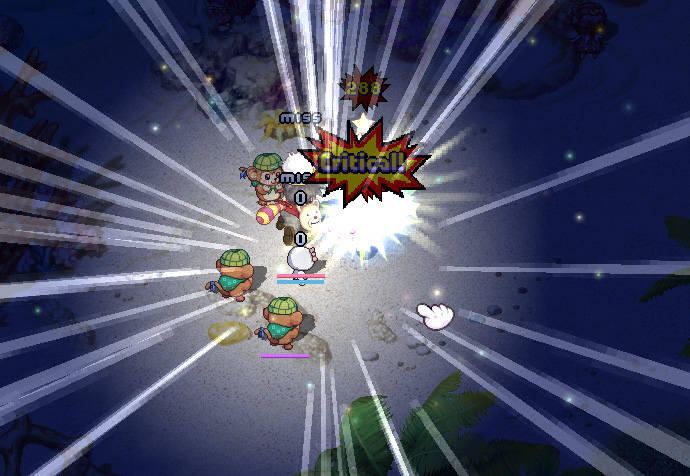 半ばお節介ともいえる心配をしているが,筆者のキャラはレベル30台後半ですからして,とくに問題もなくこのダンジョンをくぐり抜けられる。そしてダンジョンを抜ければ,そこはステキなリゾート地,コーラルビーチ! まばゆいばかりの夏の太陽の光がボクを出迎えてくれるに違いない! ……初めて到着したコーラルビーチはゲーム時間の真夜中でありました。太陽なんか全然ないよ!