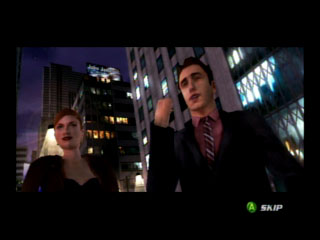 | 画面左は映画のオープニングにも使われた看板。ちなみにMJの頬骨のモデリングには専用のデザイナーがいて,なんと5億ものポリゴンが費やされているというのはウソなので注意してほしい |